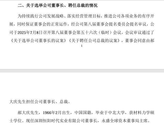 *ST金泰所发公告同时指出,董事会同意选举郝大庆担任公司董事长,任期与第八届董事会任期一致。公开资料显示,郝大庆1966年2月出生,毕业于中北大学,获材料力学硕士学位。现任深圳恒阳时代实业有限公司董事长,永盛全球资本董事局主席。