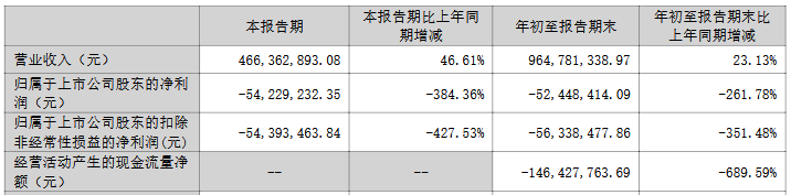 2025年1-9月,公司实现营业收入9.65亿元,同比增长23.13%;归属于上市公司股东的净利润为-5,244.84万元;归属于上市公司股东的扣除非经常性损益的净利润为-5,633.85万元;经营活动产生的现金流量净额为-1.46亿元,同比下降689.59%。