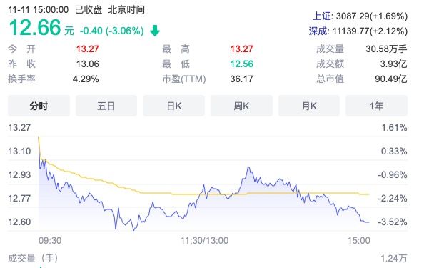 ▲拓尔思11日收报12.66元/股,总市值90.49亿元