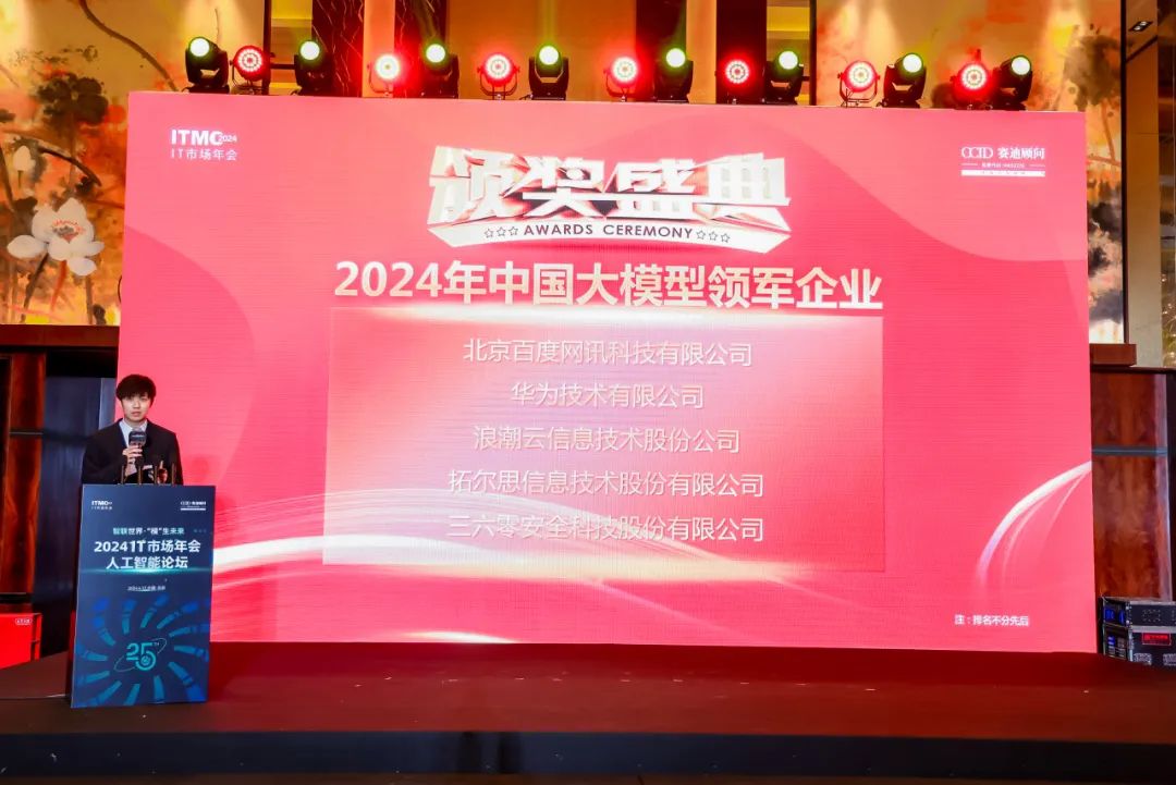 论坛上,赛迪顾问发布了《中国大模型发展研究报告(2024)》,依据核心技术能力、市场竞争能力、产品创新能力、市场发展潜力和生态开放能力等五个维度,评选出2024年中国大模型领军企业前20强。拓尔思凭借自主研发的拓天大模型,与百度、华为、浪潮信息、三六零等企业一同入选。