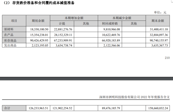 报告期末,洲明科技存货账面价值18.76亿元,较期初下降32.62%,本期计提存货跌价损失及合同履约成本减值损失合计1.22亿元,同比增加43.33%。