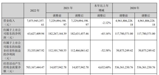 报告期内,洲明科技实现营业收入70.76亿元,同比下降2.12%(调整后,下同);归属于上市公司股东的净利润6362.74万元,同比下降65.16%;归属于上市公司股东的扣除非经常性损益的净利润5333.51万元,同比下降52.58%;经营活动产生的现金流量净额7.03亿元,同比增长4632.60%。