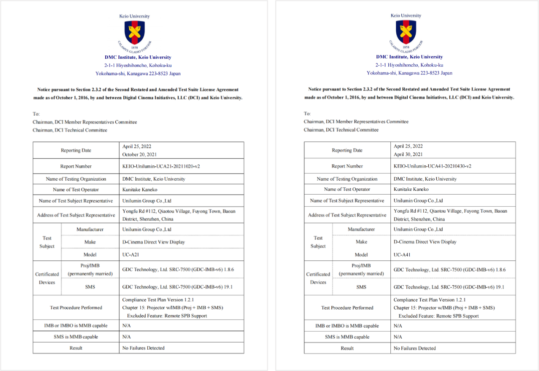 洲明UC-A41和UC-A21两款LED电影放映系统均通过DCI认证