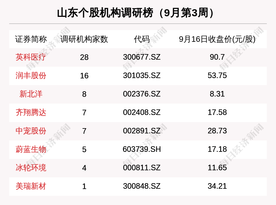 机构调研方面,据数据统计,9月第3周,有8家山东上市公司接受机构调研。其中,28家机构到访英科医疗,16家机构到访润丰股份,8家机构到访新北洋,7家机构到访齐翔腾达,7家机构到访中宠股份。