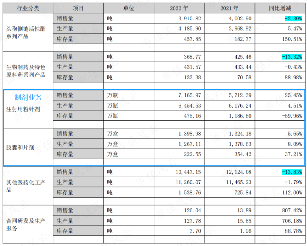 第二,2022年营收虽然增长11.70%,但除制剂业务外,其他产品的销量都是下滑的,而制剂受集采降价影响营收也是下滑的。这说明2022年业绩增长的背后,主要是产品价格上涨。