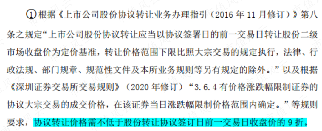 一笔股权转让的佣金高达17%,从结果看,理由再合理也站不住脚。换句话说,本次协议转让的价格就是28元/股,约为前一交易日收盘价的7.5折,很显然违反了相关规则。