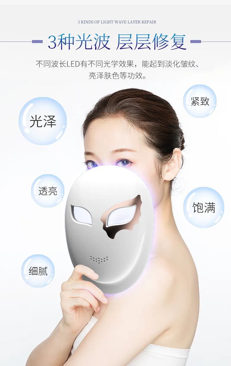 我们已经知道深紫外光对杀菌消毒有奇效,那么其他颜色/波长的光呢?经过研究发现,红光、蓝光以及红外线对人体皮肤肌理有着美容、养颜、保湿等功效,因此瑞丰光电将此3色进行科学的配比组合,推出一款新型光疗美容面膜仪,该面膜仪利用LED色光的光子能量作用于人脸,有美容、祛斑、保湿、舒缓肌肤、深层杀菌,有效降低黑色素等特点,是一款真正无害,且人人可用的医美产品。