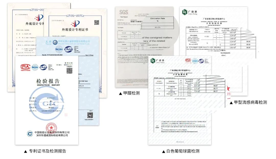 目前,瑞丰光电自主研发生产的UVC深紫外杀菌消毒空气净化产品——“魔侣”系列,不仅具备外观及发明专利,其产品特性及安全性更是得到各大检测机构的认可。