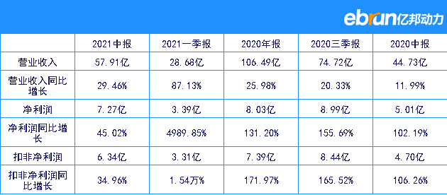 2021年半年财报明细