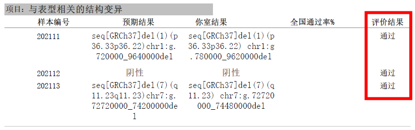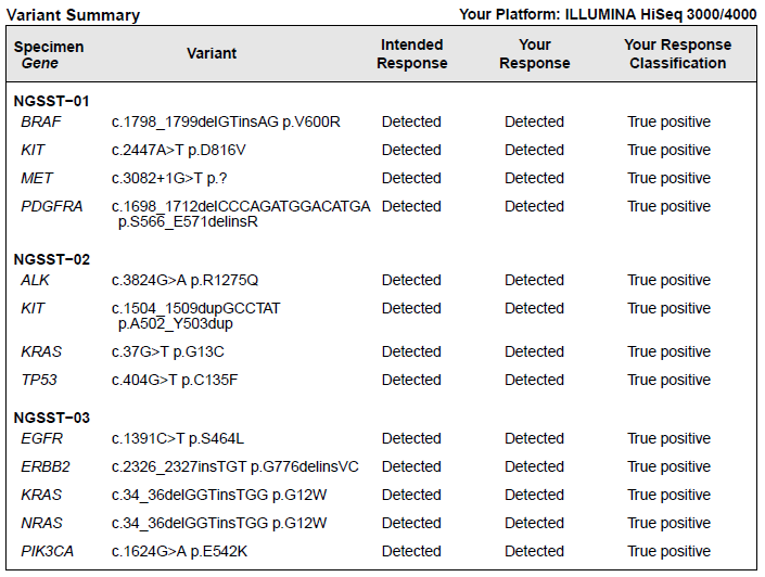 迪安诊断NGS中心检测出的变异结果与预期的完全一致,满分通过。
