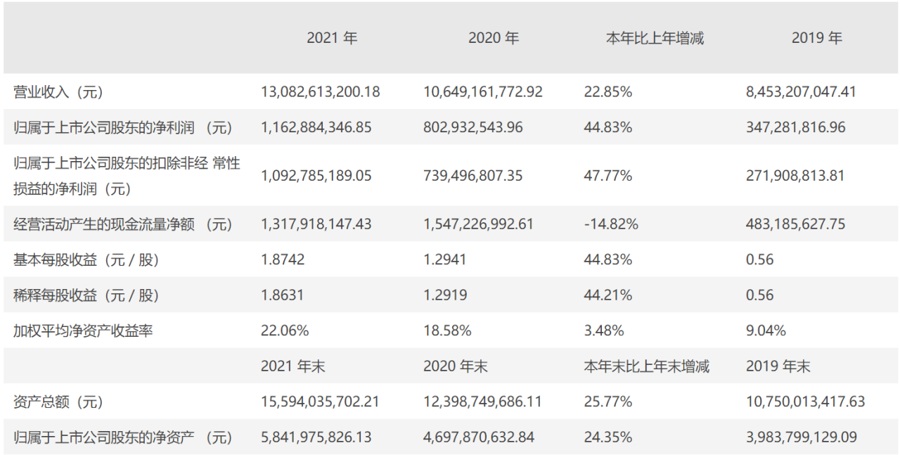 4月16日,迪安诊断发布了2021年的年度业绩报告,报告期内,该公司实现营业收入约130.83亿元,同比增加22.85%;归属于上市公司股东的扣非前和扣非后净利润分别为11.63亿元和10.93亿元,同比分别增加了44.83%和47.77%;基本每股收益1.8742元,同比增加44.83%。