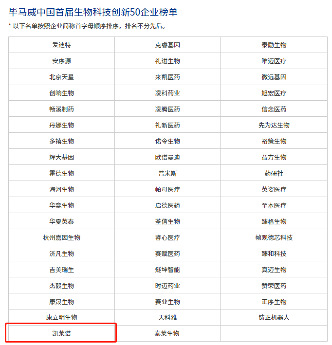 2022年6月15日,由毕马威中国主办、招商证券股份有限公司协办的首届毕马威中国“生物科技创新50企业”评选发布仪式在线上举行。迪安诊断旗下凯莱谱入选2022年首届毕马威中国“生物科技创新50企业”榜单。