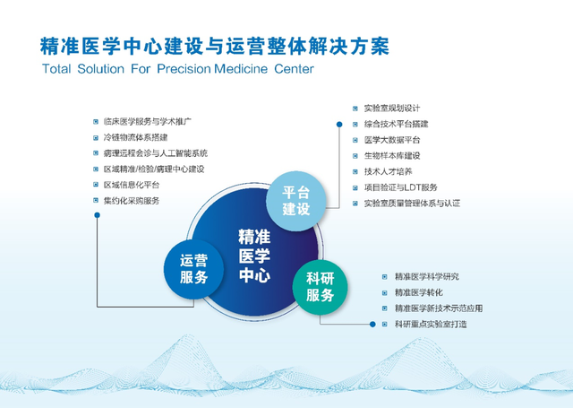 迪安诊断精准医学中心是合作共建业务面向三级医院的特色服务,精准医学中心以基因组学、代谢组学、蛋白组学等多组学技术平台力量为支撑,结合生物样本库、医学大数据平台资源优势,提供平台建设、运营服务、科研转化等实验室整体解决方案,有效提升医院精准诊断技术,助力精准医学在临床及科研上的应用,以造福人民群众。