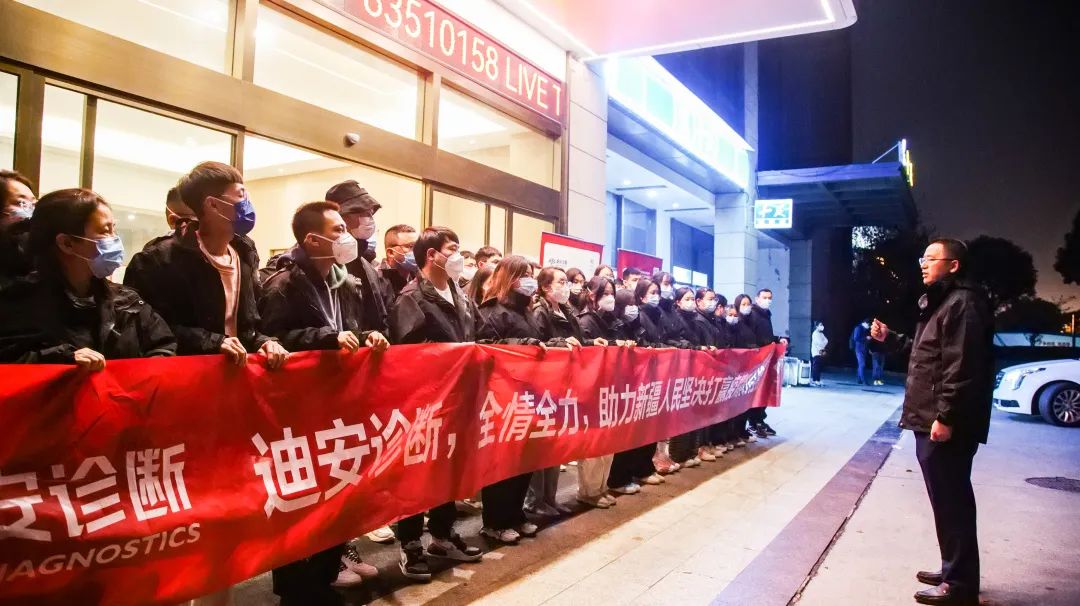 10月27日,迪安诊断接到新疆乌鲁木齐有关部门的需求后,第一时间在全国范围内调集人员。24小时内,从北京、沈阳、长春、天津、石家庄、济南、青岛、江西、江苏、杭州等地子公司调集了120余名专业检测及辅助人员,分批奔赴乌鲁木齐。