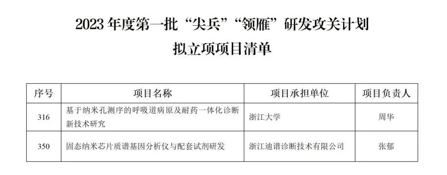参股公司迪谱诊断主持申报浙江省“尖兵”“领雁”研发攻关计划立项一项,参与申报立项一项。