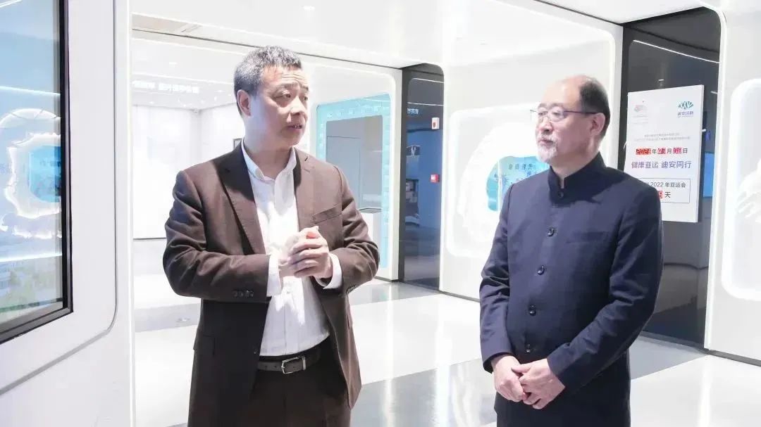 陈海斌陪同来宾们参观了集团展厅,回顾了迪安诊断的发展历程,并将集团在新发展周期中的战略布局、技术创新成果、人才培养规划等方面工作进行了介绍。