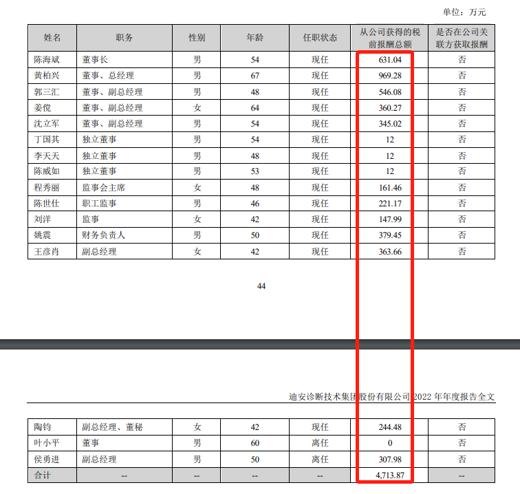 高管薪酬情况:总经理黄柏兴年薪969万排第一,董事长陈海滨631万排第二。整个高管团队薪酬平均都在300万以上。