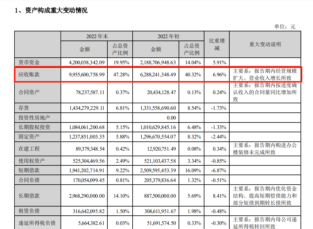 应收账款情况:有99.5亿,2023年还需要抓紧要账。
