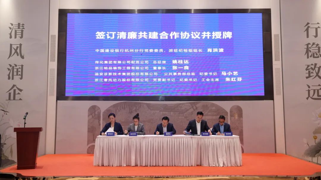 会议还发布了清廉民企建设示范单位专属金融服务方案,建设银行杭州分行与省、市清廉民企示范单位代表现场签订清廉共建合作协议并授牌。