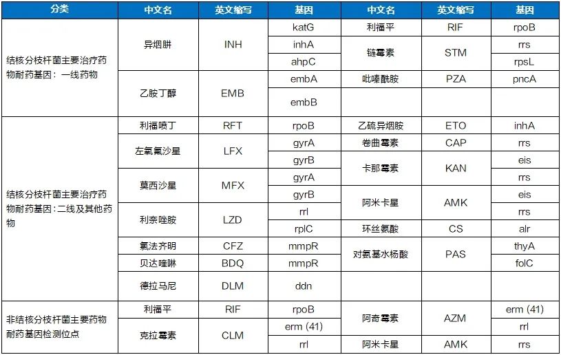 分枝杆菌tNGS耐药基因检测范围