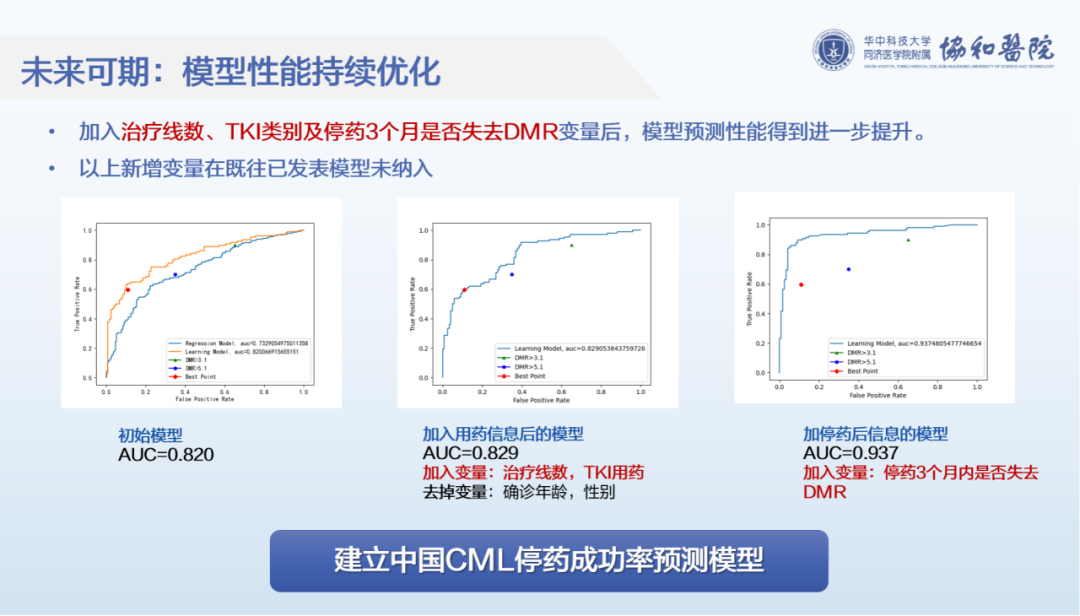建立中国CML停药成功率预测模型,能够有效地指导临床,针对不同患者制定更加精准的停药决策,提升整体停药成功率。同时,临床还需要纳入更多的停药数据,开展更多前瞻性的研究,对模型进行优化,持续提升预测精度。