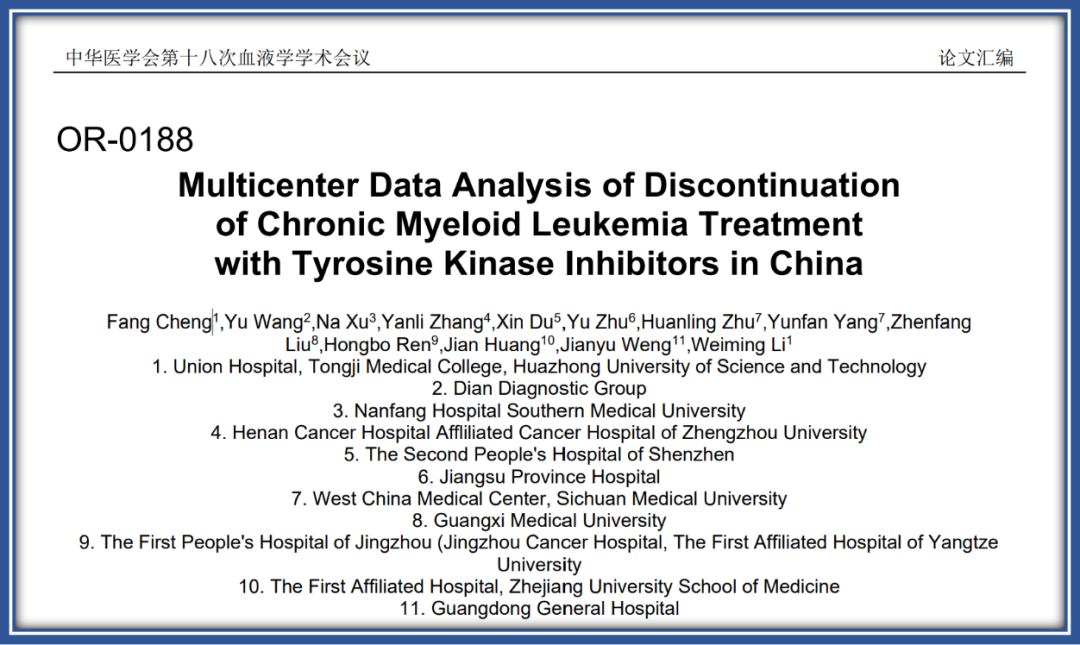 近日,在中华医学会第十八次血液学学术会议(2024CSH)白血病分论坛上,华中科技大学同济医学院附属协和医院黎纬明教授作《中国慢性髓系白血病停药预测模型的建立》专题报告,获得了临床工作者的广泛关注。该报告分享了目前国内规模最大的CML停药模型的初步成果,同时也是全球已发表的规模第二大的研究队列。迪安诊断作为该研究的主要参与单位之一,负责临床数据治理及AI建模等相关工作。