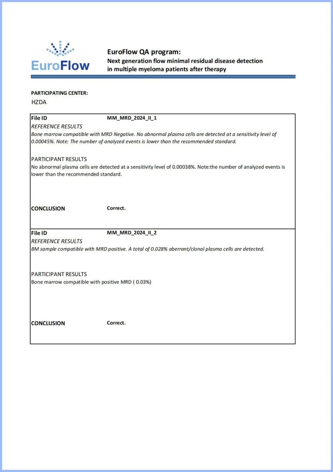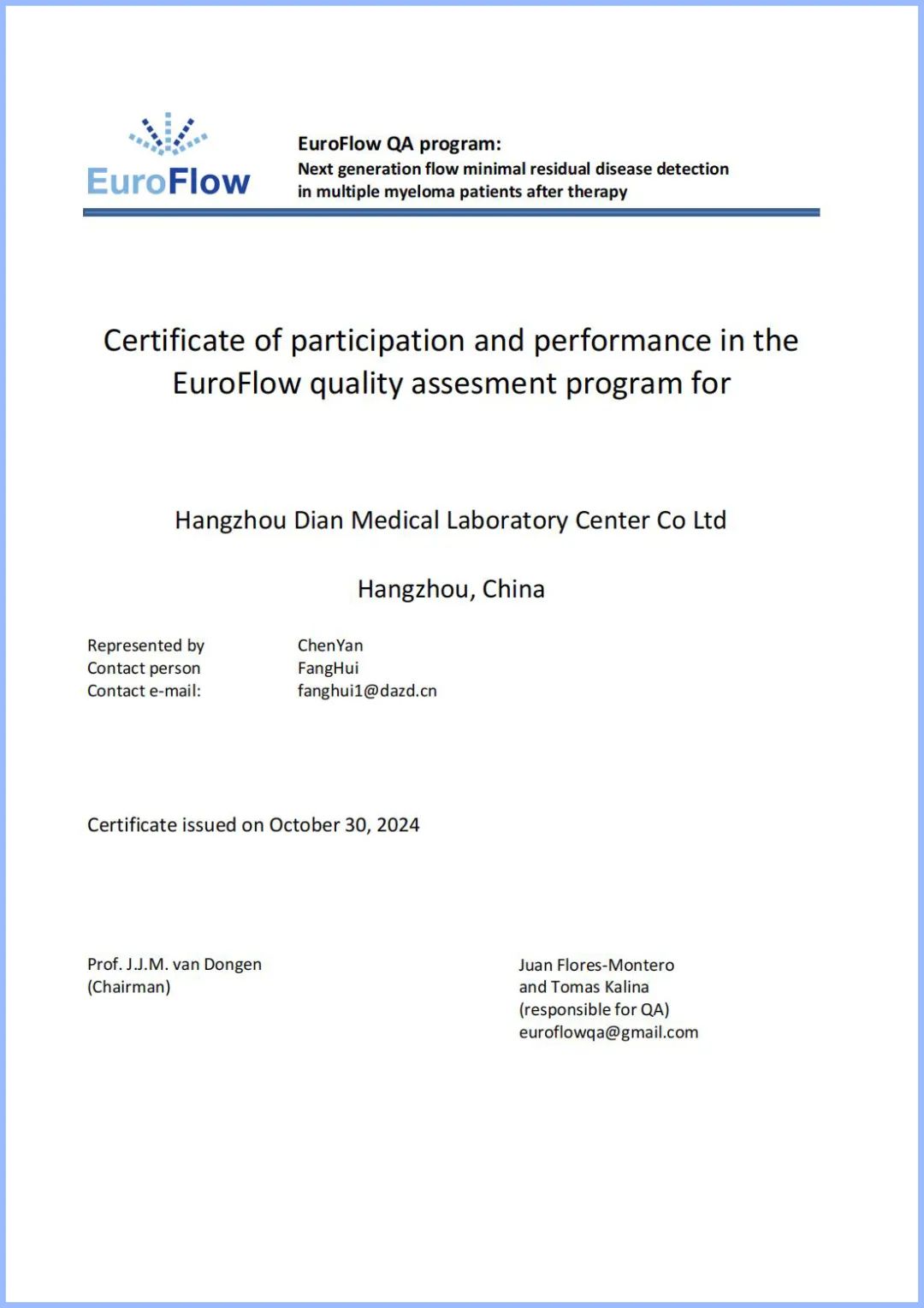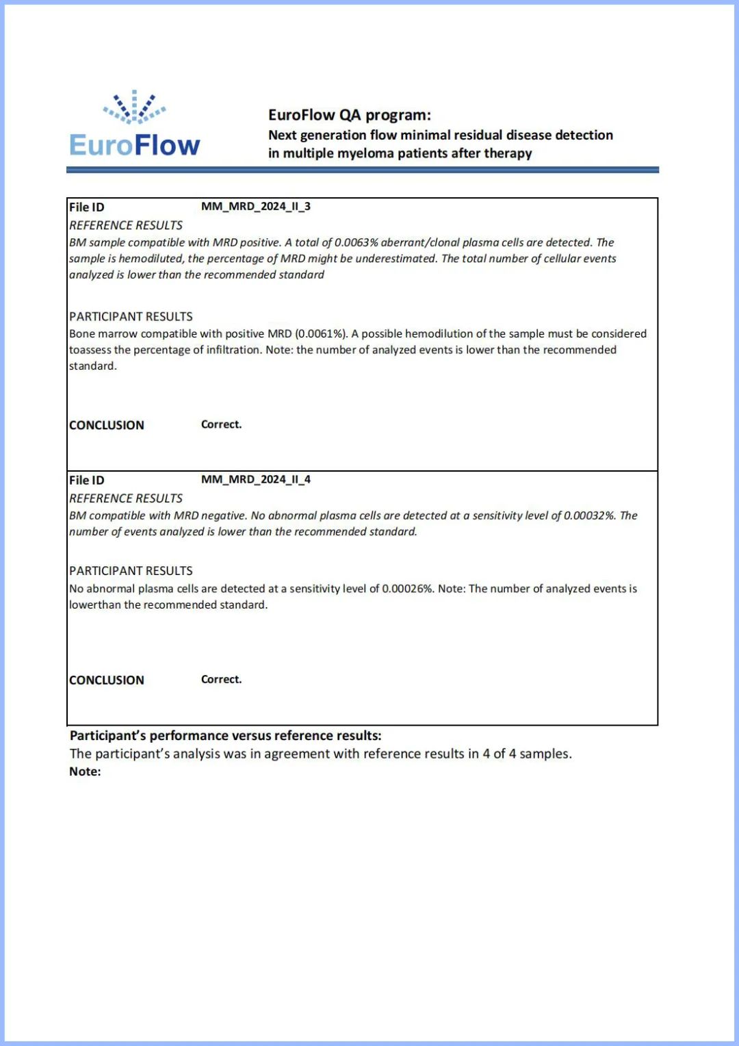 近日,欧洲流式联盟(EuroFlow)公布了2024年多发性骨髓瘤微小残留病质量评估(MM MRD QA)结果报告,迪安诊断与全球50个实验室同台竞技,取得满分的成绩。
