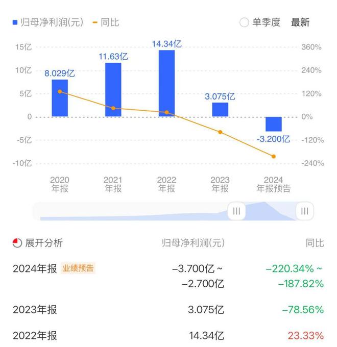 随着疫情的结束,全国阶段性检测筛查需求消退,迪安诊断业绩出现断崖式暴跌,2023年,公司净利润下降至3.08亿元,同比大幅下降78.56%;2024年预计净利润亏损3.7亿元至2.7亿元,同比再度大幅下降220.34%至187.82%。