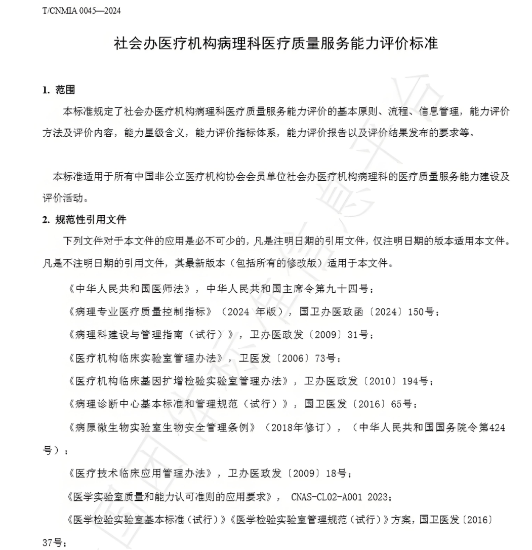 该标准主要技术内容涵盖社会办医疗机构病理科医疗质量服务能力评价的基本原则、流程、信息管理,能力评价方法及评价内容,能力星级含义,能力评价指标体系,能力评价报告以及评价结果发布的要求等。适用于所有中国非公立医疗机构协会会员单位社会办医疗机构病理科的医疗质量服务能力建设及评价活动。