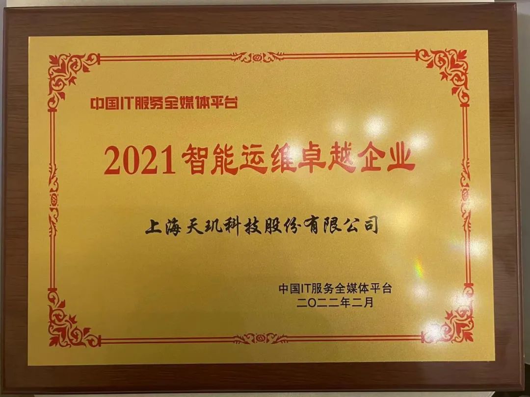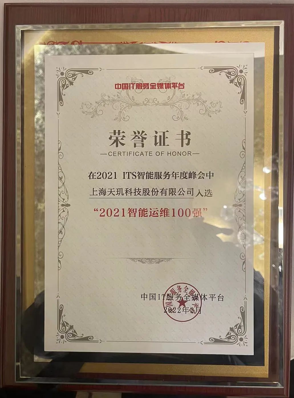 “十四五”开局以来,数字经济发展成为国家战略,推动了中国IT服务产业的加速发展。会上,2021年度ITS智能服务优秀企业年度评选正式揭晓,天玑科技作为优质服务供应商成功入选“2021智能运维100强”,并荣获“智能运维卓越企业”荣誉奖项。