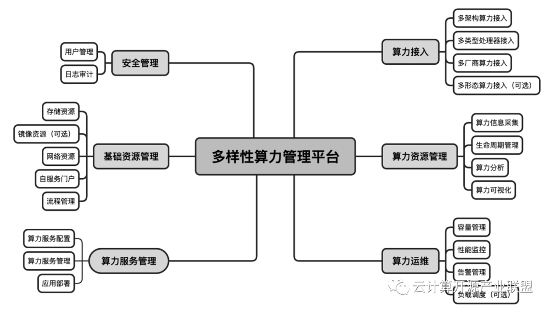图 2 《多样性算力管理平台能力要求面向自建算力中心》标准框架