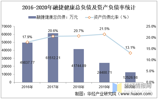 2016-2020年融捷健康总负债及资产负债率统计