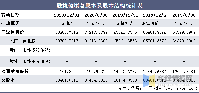 融捷健康总股本及股本结构统计表