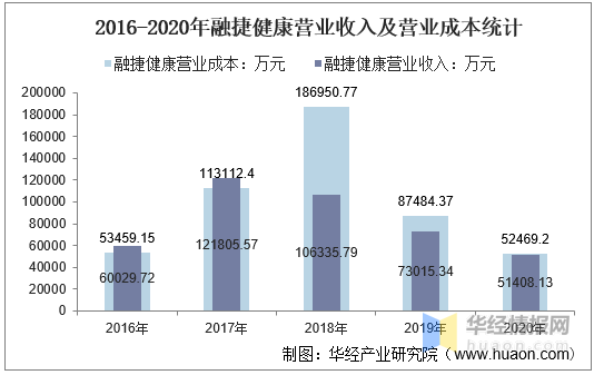 2016-2020年融捷健康营业收入及营业成本统计