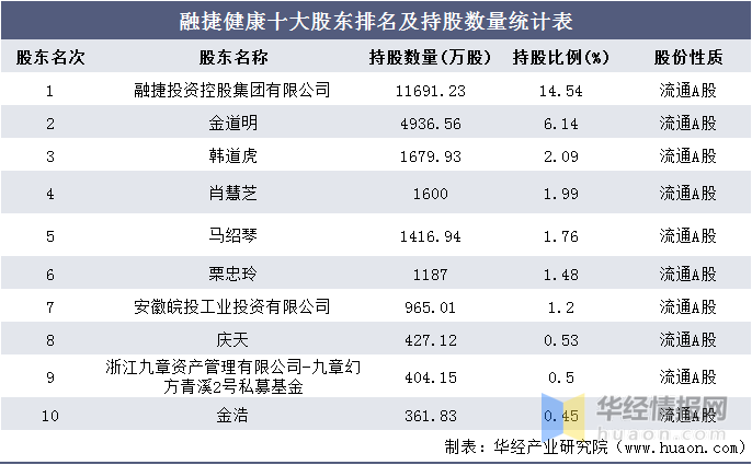 融捷健康十大股东排名及持股数量统计表