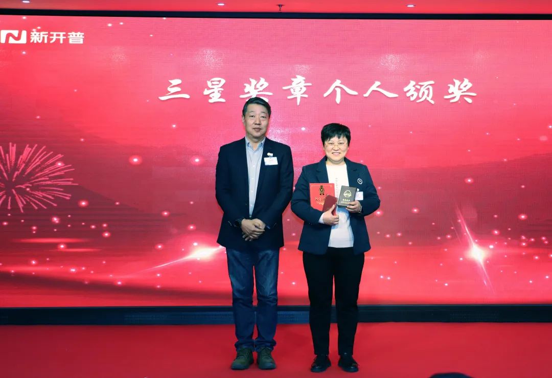 目标与梦想熠熠生辉,责任和信念交织共融。大会对2024年度优秀员工、优秀团队、三星四星个人奖章、三星四星团队奖章、优秀合作伙伴获得者进行隆重表彰,从技术革新到市场开拓,从平台支撑到市场服务攻坚与质量改善,他们满怀荣耀,每一个闪耀的名字背后,都承载着三百昼夜的攻坚足迹,这些勋章不仅是功勋簿上的刻度,更是穿透未来的精神光束,指引全体新开普人高擎“以战养战,战则必胜”的旗帜,为推动集团高质量发展勇毅前行!