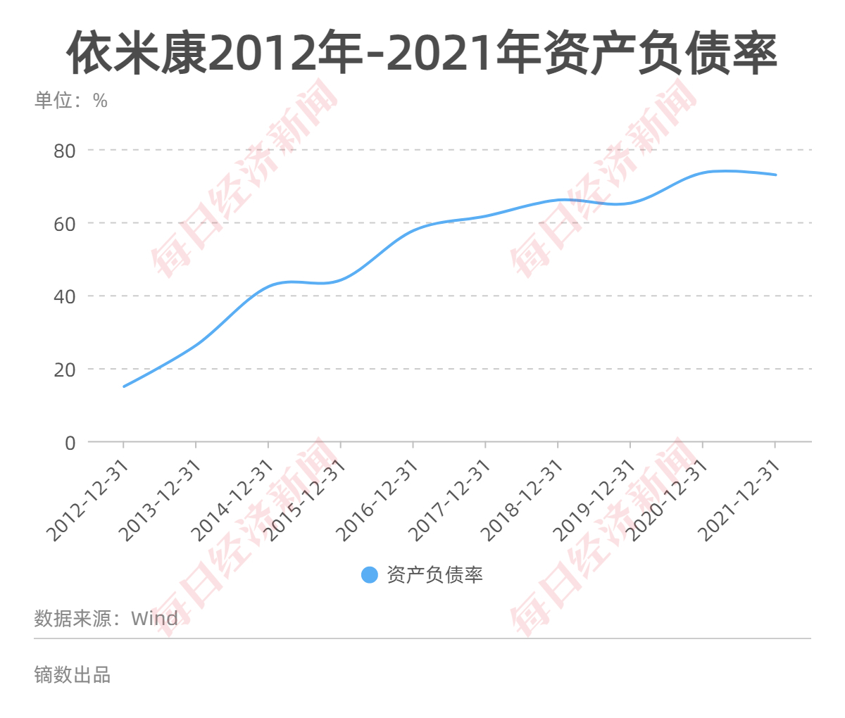 受到今年“东数西算”工程正式全面启动的影响,作为IDC概念股,3月依米康在二级市场也引发投资者追捧。虽然政策方面有利好,但IDC产业资金回流时间长,项目落地需要一定时间,因此需要不断融资,依米康近两年的资产负债率在逐年攀升,2021年由于压缩银行贷款规模实现了微降。
