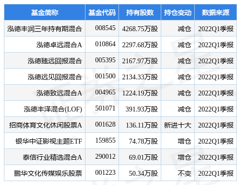 其中持有数量最多的基金为泓德丰润三年持有期混合,目前规模为84.75亿元,最新净值1.0278(4月27日),较上一交易日上涨3.35%,近一年下跌38.05%。该基金现任基金经理为邬传雁。