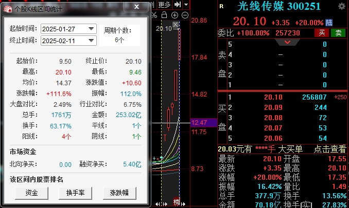 11日,A股影视、IP经济概念持续走高,光线传媒一马当先再次“20CM”涨停,走出5天3板行情,自蛇年开年以来,光线传媒股价涨幅已经超过110.9%。总市值从280亿元暴增至589.7亿元,《哪吒2》相当于5个交易日再造一个光线传媒。
