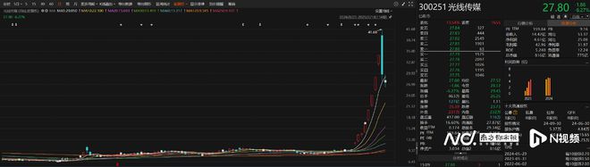 2月17日,光线传媒开盘后迅速冲高封板,股价一度高达41.68元/股。然而,开盘尚不足五分钟,光线传媒便迎来“砸盘”,上演“准天地板”,巨震近40%。截至当日收盘,光线传媒股价报29.66元/股,跌幅达14.60%。