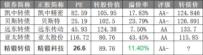 汽车轻量化类转债市场受偏好,给的溢价较高。公司是细分行业龙头,业绩稳健,行业景气度高,汽配件、汽车轻量化、新能车、比亚迪概念。