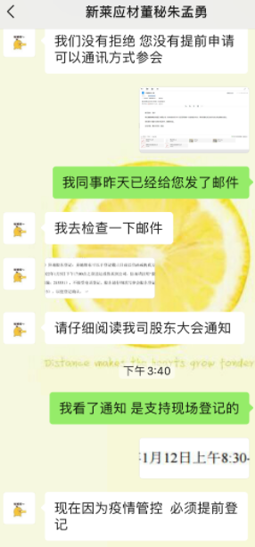 根据深交所的回复邮件,深交所在集微网发起投诉后,展开对新莱应材的调查问询,要求其作出说明。然而新莱应材却表示:“爱集微本次来访两名人员未出示相关授权文件,也未按照公司所在地政策要求,向公司报备核酸检测报告及行程轨迹,故公司拒绝其参加现场股东大会。”