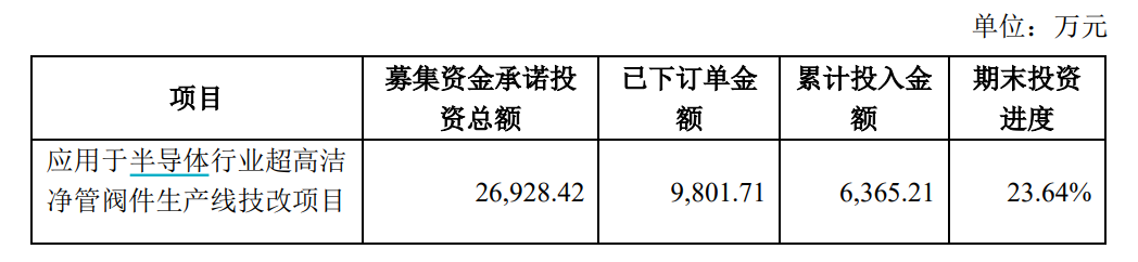 据新莱应材披露,2019年,公司发行可转债募资2.8亿元用于半导体行业超高洁净管阀件生产线技改项目。但两年过去了,该项目却进展十分缓慢。
