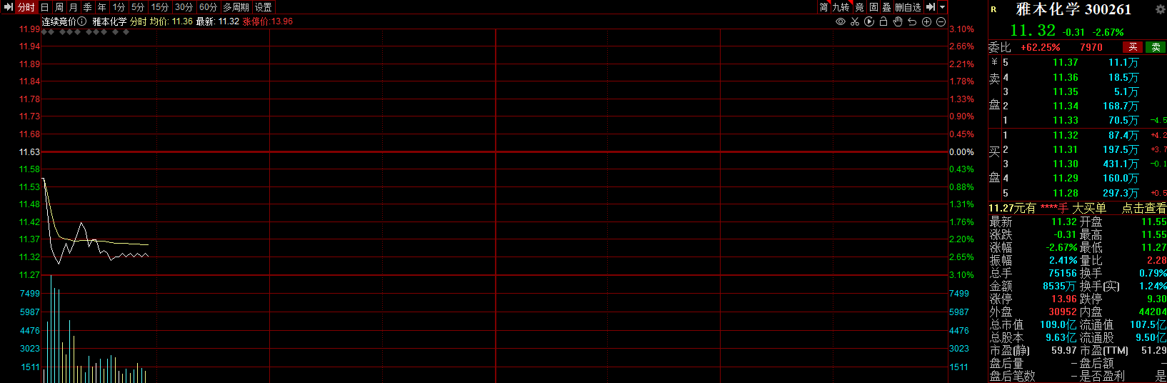 1月10日,雅本化学(300261.SZ)低开低走,盘中一度跌超3%。