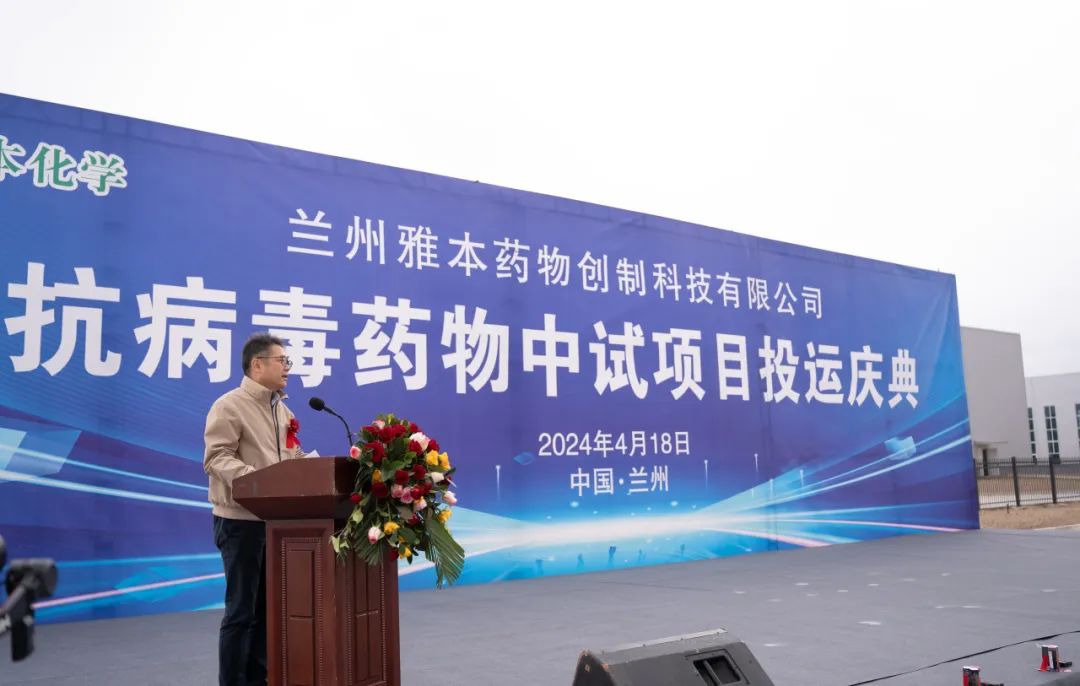 随后,石化产业投资集团党委副书记、总经理叶得强致辞,叶总热烈祝贺雅本化学兰创抗病毒药物中试项目投运,他表示,项目的投运是兰州新区“优化营商环境、提升服务效能”成果的最直接体现,接下来会持续发挥职能职责,全面助力雅本化学兰州基地的高质量发展。