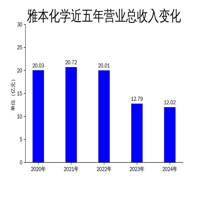 2025年4月23日,雅本化学发布了2024年年报。报告显示,公司实现营业总收入12.02亿元,同比下降6.00%;归属净利润为-2.58亿元,同比大幅下降213.15%;扣非净利润同样为-2.58亿元,同比下降146.16%。尽管公司在农药和医药中间体业务领域积极布局,但受产品价格波动和市场竞争加剧等多重因素影响,整体业绩承压,亏损进一步扩大。