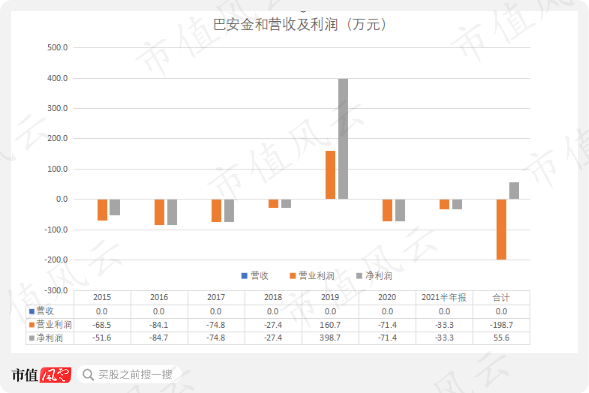 但是,成立的六年时间里,巴安金和的营业收入一直是0。只有2019年有一笔收购加气站失败,而诉讼对手方违约获得的240万赔偿。