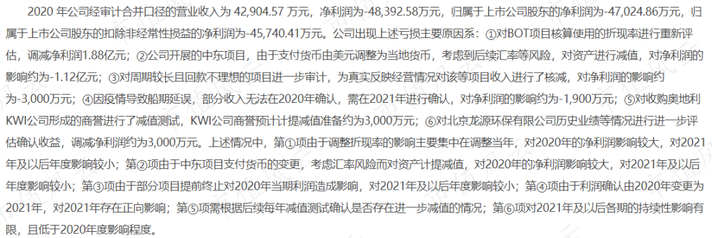 并且……在2020年报修正公告里,称考虑公司收购龙源环保时存在评估增值,调减净利润0.3亿。