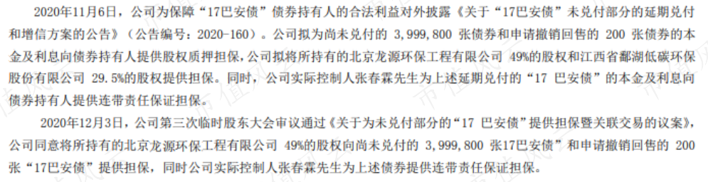 刚收购回来的龙源环保和鄱湖环保,就被拿去给未偿付的公司债做担保了。