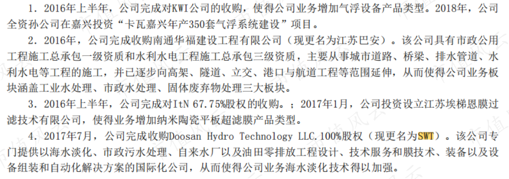 2015年以来,公司完成对三家外国公司的收购,简称分别是KWI、ItN、Doosan(后改名为SWT)。